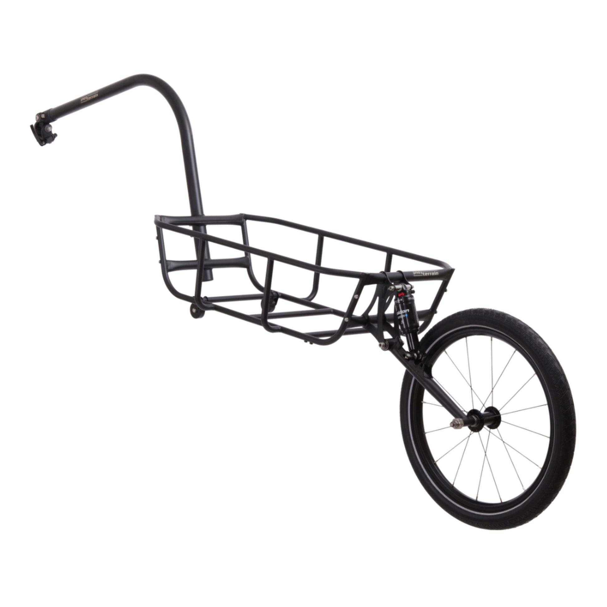 The Mule a suspended single-wheel cargo trailer that lets you haul your gear on a trips across town or a tour around the globe. Built with a lightweight, sturdy CrMo steel frame, handling is nimble yet stable even while fully loaded. Suspension is highly adjustable, letting you set the travel, ride height, shock pressure and damping to suit your terrain and cargo load. The Mule can carry up to 38kg and 80-100 litres of cargo on surfaces ranging from paved roads to technical singletrack. The machined alloy draw-bar linkage with sealed-bearings means the trailer stays firmly attached with quiet, smooth and stable connection over the roughest terrain. Optional accessories such as a kickstand, frame liner, rain cover, mudguard, and waterproof duffel bag let you outfit your Mule to suit your journey. An excellent basecamp or bikepacking/touring companion, the Mule can also be quickly detached from your bike allowing you to ride unencombered for day trips and micro-adventures. With the Mule you can carry the cargo that matters most!