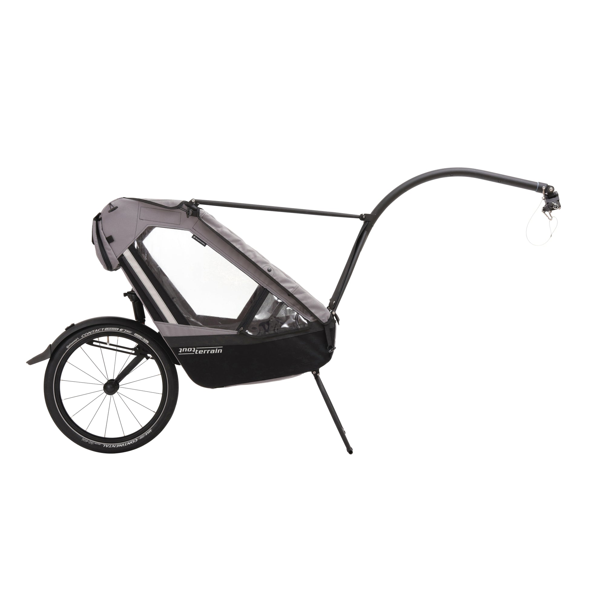As a passenger, your child will enjoy the benefits of the comfortable cabin interior, adjustable weather-proof ripstop cover, and smooth suspension. The lightweight steel frame and adjustable suspension keep your child safe and comfortable while offering unrivalled handling. The machined alloy drawbar crosslink with sealed-bearings means the trailer stays firmly attached with quiet, smooth and stable connection over the roughest terrain. A range of accessories lets you configure the cabin for the safety and support of children ages 3-months to 5-years (25kg).