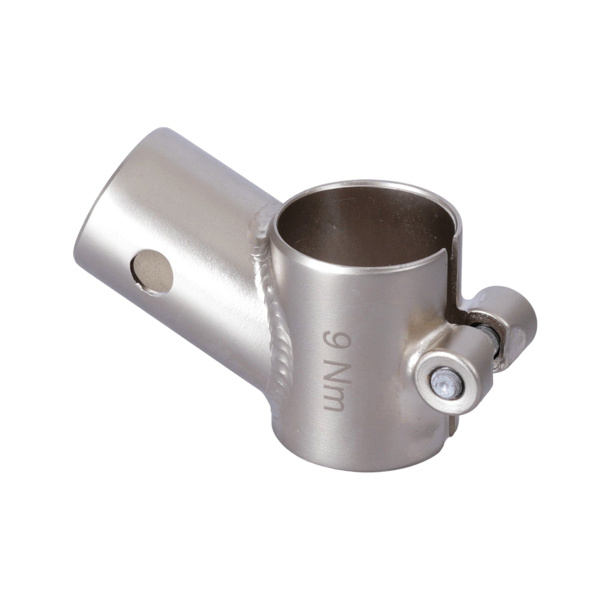Our trailer hitch is made of extremely robust and durable CrMo steel. A nickel coating provides corrosion protection and gives it a slightly golden surface color. The textured surface increases the friction between at the interface with the cross-link and provides a stiff, play-free connection to the trailer. The latest version also has a wider slot which allows the hitch to slip over dropper post cables and hydraulic hoses making for easier installation and removal.